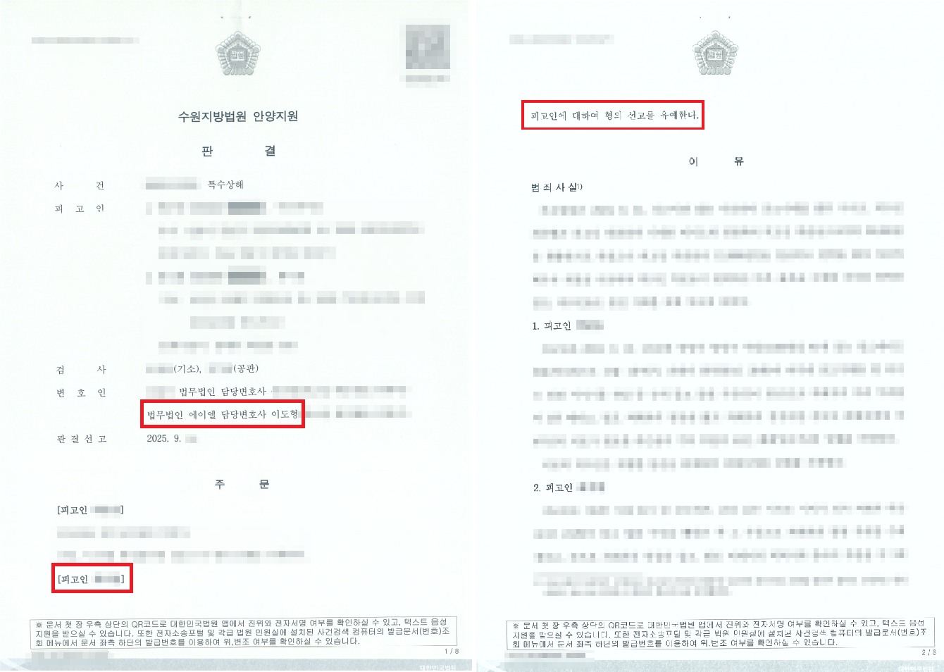 - 에이엘의 주장을 받아들여 피고인 1에 대하여 선고유예, 피고인 2에 대하여 징역 6개월, 집행유예 2년의 판결을 내림.